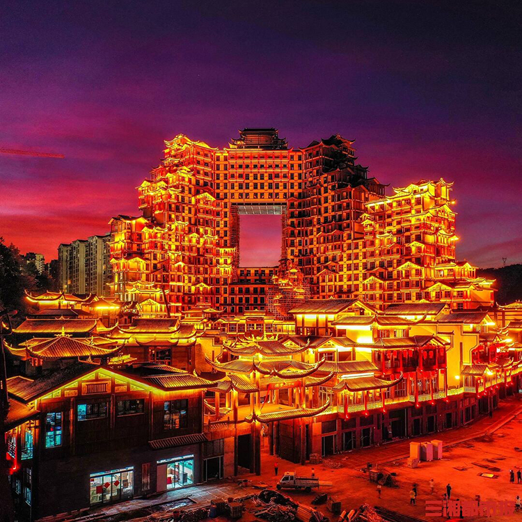它將獨特的土家族建筑奇觀與現(xiàn)代光影科技(如全息投影、互動燈光秀)完美結(jié)合,打造出極具沉浸感的夜間文化體驗場景,并通過引入豐富的地方非遺展示、特色美食集市與沉浸式演藝活動,成功激活區(qū)域夜游經(jīng)濟,為游客提供了傳統(tǒng)與現(xiàn)代交織的全新文旅樣本,引領(lǐng)了沉浸式文化夜游的新風(fēng)潮。
