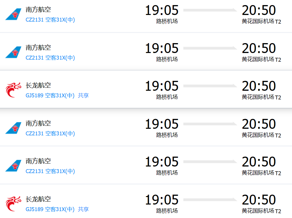 臺(tái)州路橋機(jī)場(chǎng)有直飛湖南長(zhǎng)沙黃花機(jī)場(chǎng)的航班,具體參考如下: