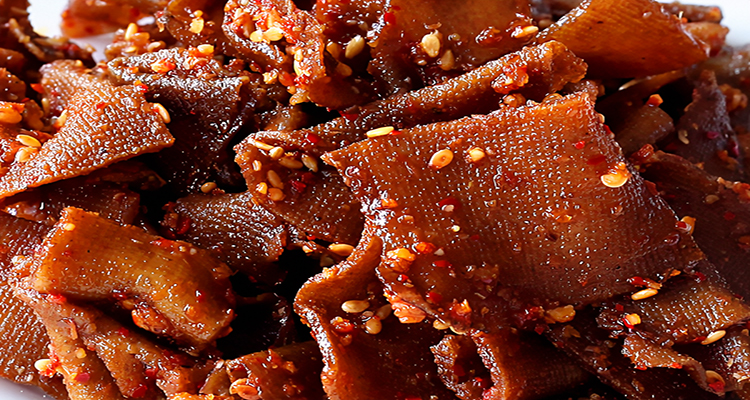 平江醬干也叫長壽醬干,這道美食起源于岳陽市長壽街,是清咸豐年間的百歲老人何維豐首創(chuàng),經(jīng)過了18道加工工序,三鹵三烘制作而成,做出來的豆干烏黑油亮,充分吸收了鹵水的味道,紋路光滑,耐嚼爽口,有湘西獨(dú)有的醬香味。