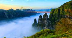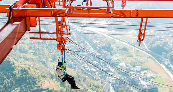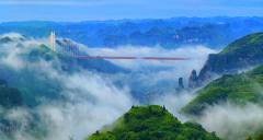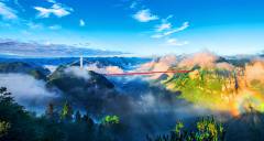 矮寨大橋飛越在德夯峽谷之巔,是世界跨峽谷跨徑最大的鋼桁梁懸索橋,大橋跨徑1176米,橋面距離峽谷底部355米。2007年10月開始修建,2012年3月建成通車,總造價(jià)15億元。大橋以克服了五大“世界級(jí)”施工難題和創(chuàng)造了四項(xiàng)“世界第一” 的高科技含量享譽(yù)中外,被贊為橋梁建筑藝術(shù)和自然景觀完美結(jié)合的典范。矮寨大橋不只是連接湘渝的重要交通設(shè)施,更是湘西的標(biāo)志性景點(diǎn)。