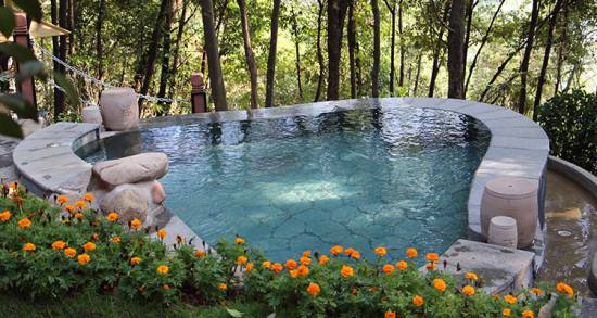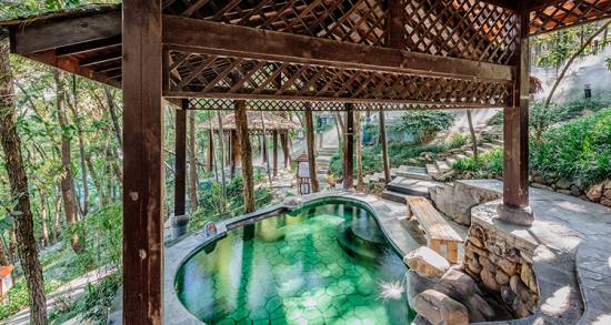 萬(wàn)福溫泉屬天然自涌溫泉,清澈碧透,常年恒溫53℃,富含偏硅酸、氡等多種有益人體健康的天然礦物質(zhì),既可直接飲用,又有醫(yī)療保健作用,據(jù)權(quán)威機(jī)構(gòu)檢測(cè),萬(wàn)福溫泉是中國(guó)最大的氡溫泉資源。