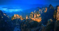 有景點(diǎn)110處,既有造型獨(dú)特的山峰與危崖,又有流翠滾玉一般溪流與飛瀑:既有以前窩藏土匪的“歪嘴巖”,又有奇絕難攀的“鬼愁寨”:還有“馬蹄巖”、“猿愁攀”、“天波府”、“姐妹灣”等許多奇景,真是寫(xiě)不盡,看不完。這里還要特別提到“宗保峰”、“六郎峰”、“佘太君”、“楊家界”,這些名字是什么意思?原來(lái)這楊家界的一些山名,都是楊家將子孫后代為紀(jì)念楊家將而取的地名,一千多年來(lái),一直沿襲未改,所以來(lái)?xiàng)罴医缬斡[,不僅可以飽覽這里的原始風(fēng)光,同時(shí)還可以替楊家尋祖問(wèn)根,繼承并發(fā)揚(yáng)愛(ài)國(guó)忠良的遺風(fēng)。