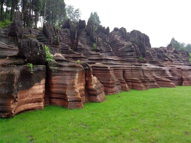 據(jù)地質(zhì)專家考證,紅石林巖石形成歷史約有 4.5 億年,紅石林地域與坐龍溪峽谷一樣同屬地史上所稱的揚子古海,海底沉積了大量混合泥砂的碳酸鹽物質(zhì),經(jīng)地殼運動和侵蝕、溶蝕作用,形成了這片美麗的地質(zhì)奇觀。