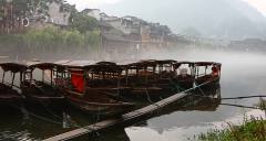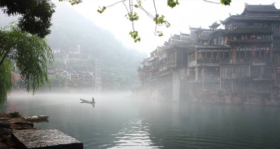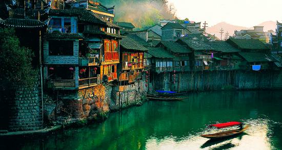 沱江河是古城鳳凰的母親河,她依著城墻緩緩流淌,世世代代哺育著古城兒女。坐上烏蓬船,聽著艄公的號(hào)子,看著兩岸已有百年歷史的土家吊腳樓,別有一番韻味。順?biāo)拢┻^虹橋一幅江南水鄉(xiāng)的畫卷便展現(xiàn)于眼前:萬(wàn)壽宮、萬(wàn)名塔、奪翠樓……一種遠(yuǎn)離塵世的感覺悠然而生。沱江的南岸是古城墻,用紫紅沙石砌成,典雅不失雄偉。城墻有東、北兩座城樓,久經(jīng)滄桑,依然壯觀?! °铀宄?,城墻邊的河道很淺,水流悠游緩和,可以看到柔波里招搖的水草,可以撐一支長(zhǎng)篙漫溯。沿沱江邊而建的吊腳樓群在東門虹橋和北門跳巖附近,細(xì)腳伶仃的立在沱江里,象一幅永不回來(lái)的風(fēng)景。